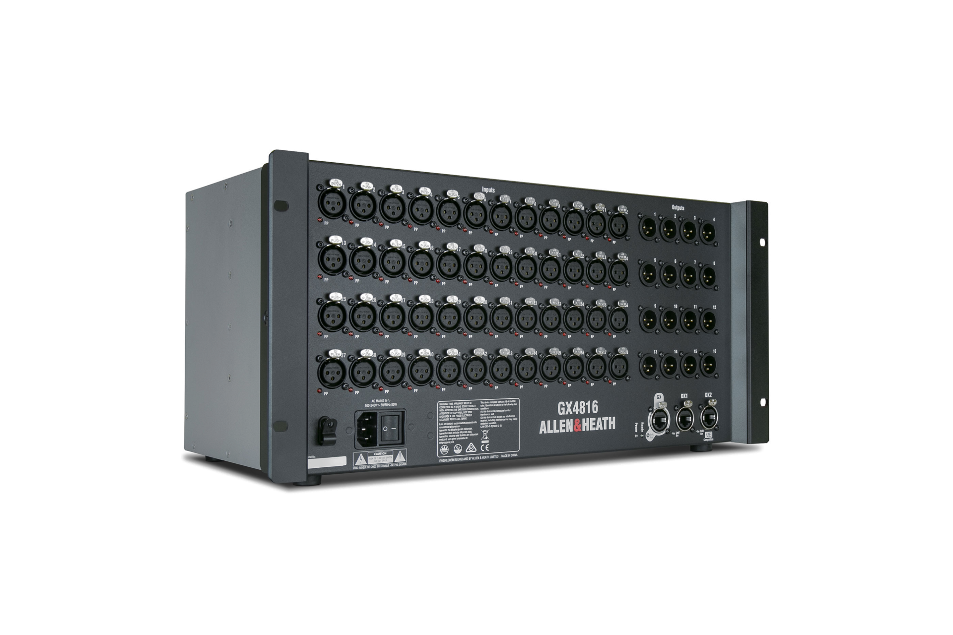 - Rack de scène embarquant le moteur de mixage Audio disponible en 3 formats: 32, 48 ou 64 entrées micro